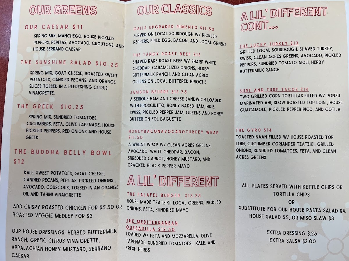 For food lovers, the menu shines with classics like Gails Pimento and The Tangy Roast Beef, while inventive dishes like the Surf and Turf Tacos and Lucky Turkey Sandwich showcase their commitment to flavor and freshness. The desserts, especially the renowned carrot cake, are simply irresistible.